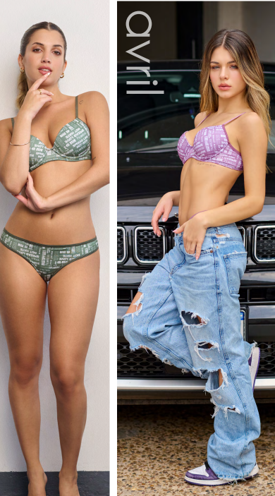 Conjunto de microfibra sublimada. Corpiño taza soft con push up y cola less.
