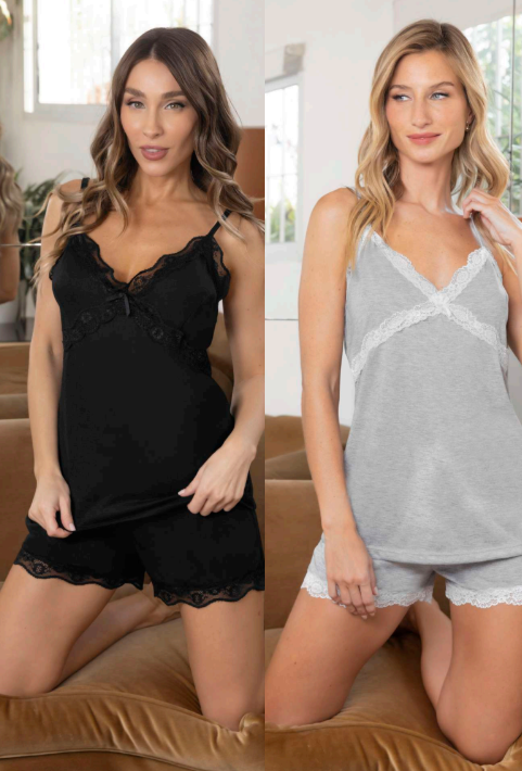 PIJAMA DE VISCOSA CON PUNTILLA