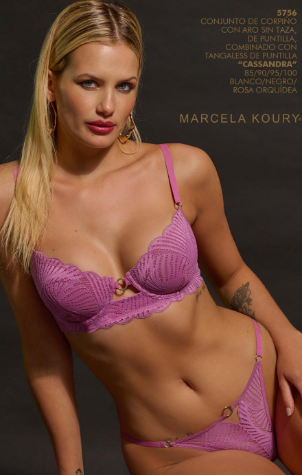 CONJUNTO DE CORPIÑO CON ARO SIN TAZA, DE PUNTILLA, COMBINADO CON TANGALESS DE PUNTILLA